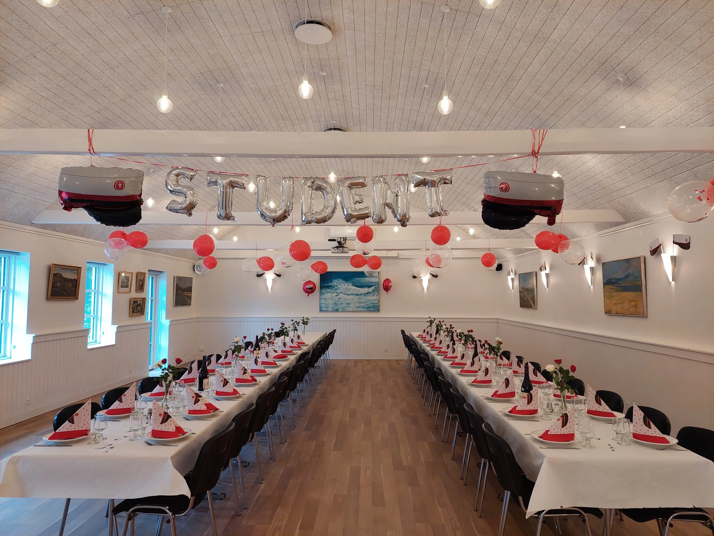 Studentergilde, opdækning til ca. 45 personer. (bemærk billede er fra før salen blev lavet om)
