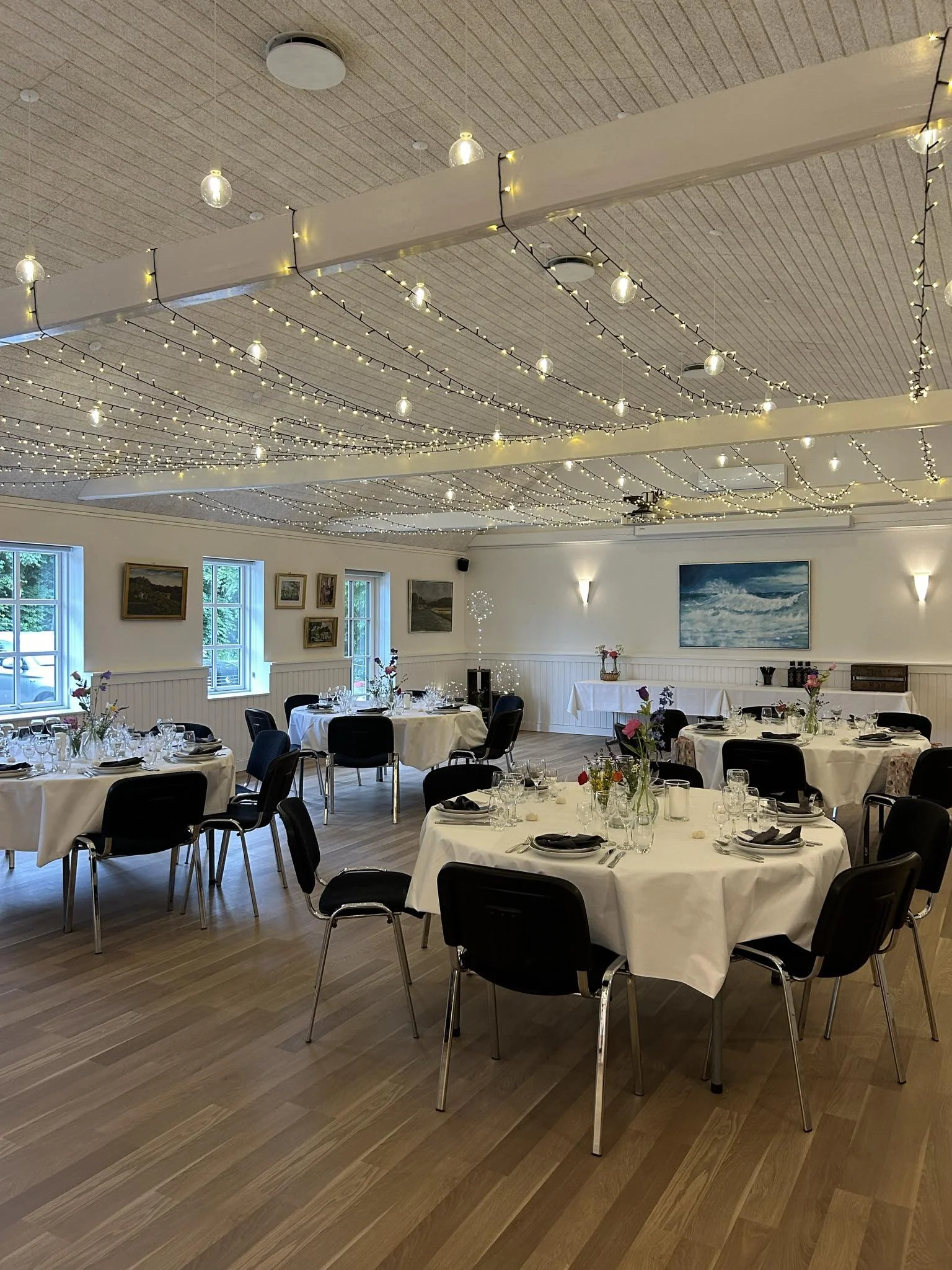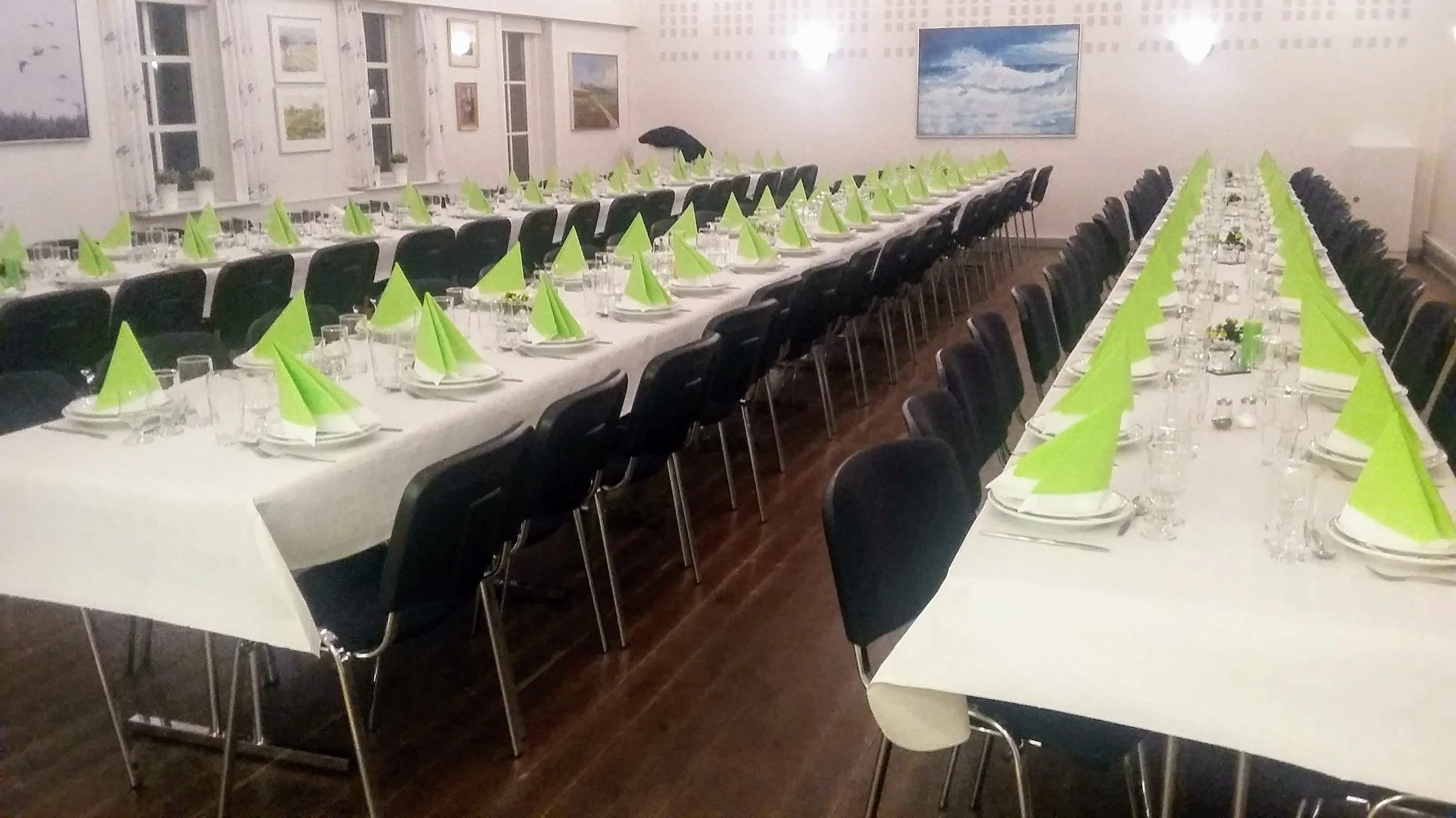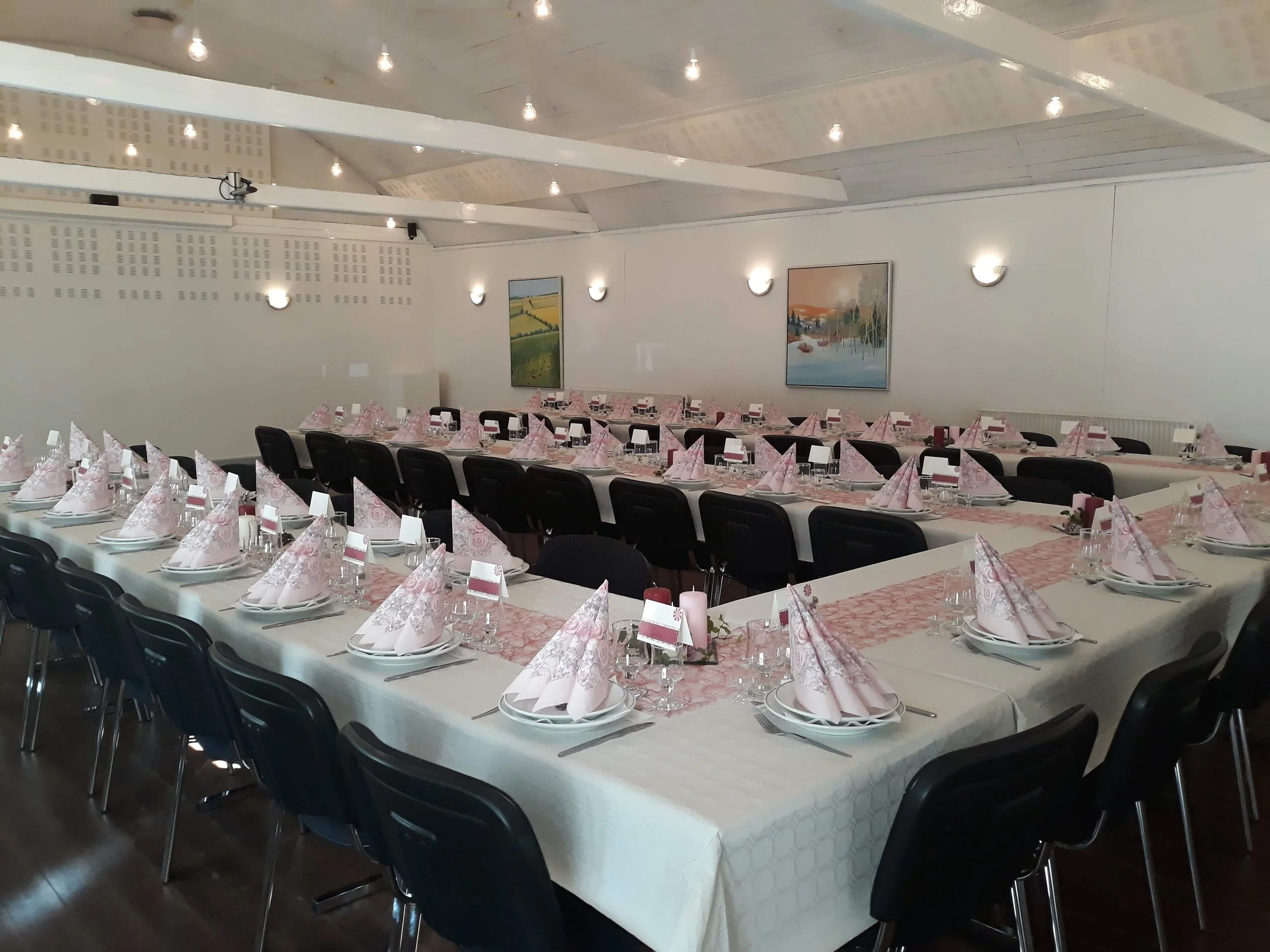 50 års fødselsdag, opdækning til ca. 110 personer. (bemærk billede er fra før salen blev lavet om)