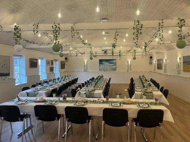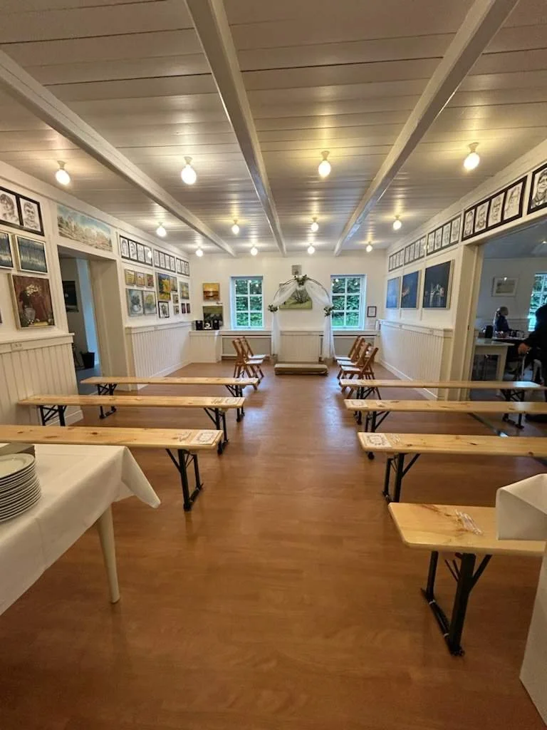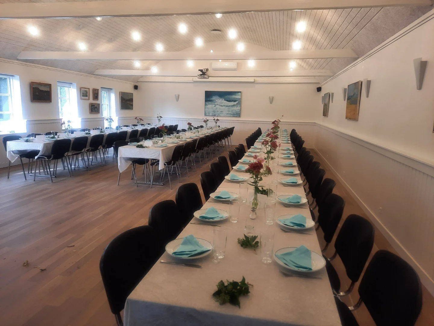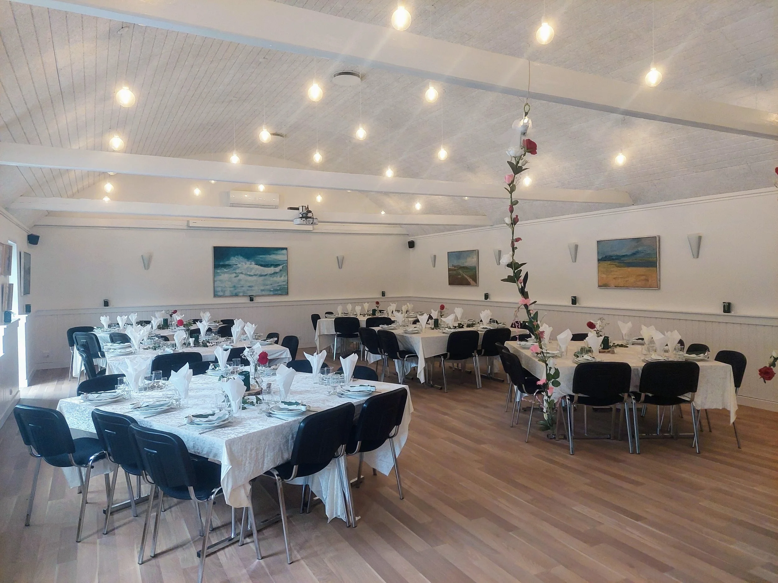 Konfirmation, opdækning til ca. 60 personer. (bemærk billede er fra før salen blev lavet om)